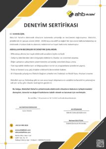 The certificate you are verifying on this page is an official Experience Certificate issued by AHB BİLİŞİM. After conducting the verification process, we confirm that all information contained in the document fully matches our company’s records, and that the certificate is genuine, valid, and original.